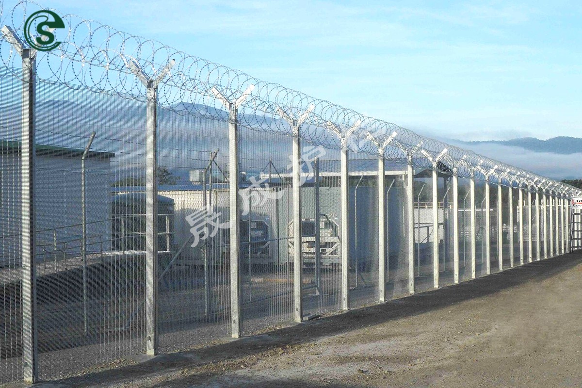 3、?美觀性好?:高強度護欄網(wǎng)的設(shè)計簡潔、美觀,適用于各種環(huán)境。其黑色經(jīng)過熱鍍鋅處理,具有出色的耐候性和防腐蝕性能。這種護欄網(wǎng)不僅能提供一個安全界面,還能為環(huán)境增添美感,無論是用于監(jiān)獄還是工業(yè)園區(qū),都能滿足安全和美觀的雙重需求?。