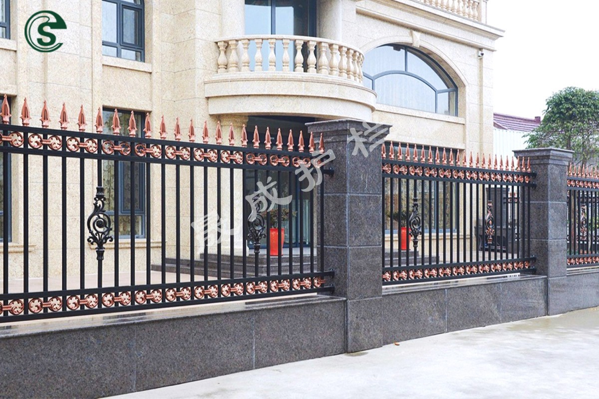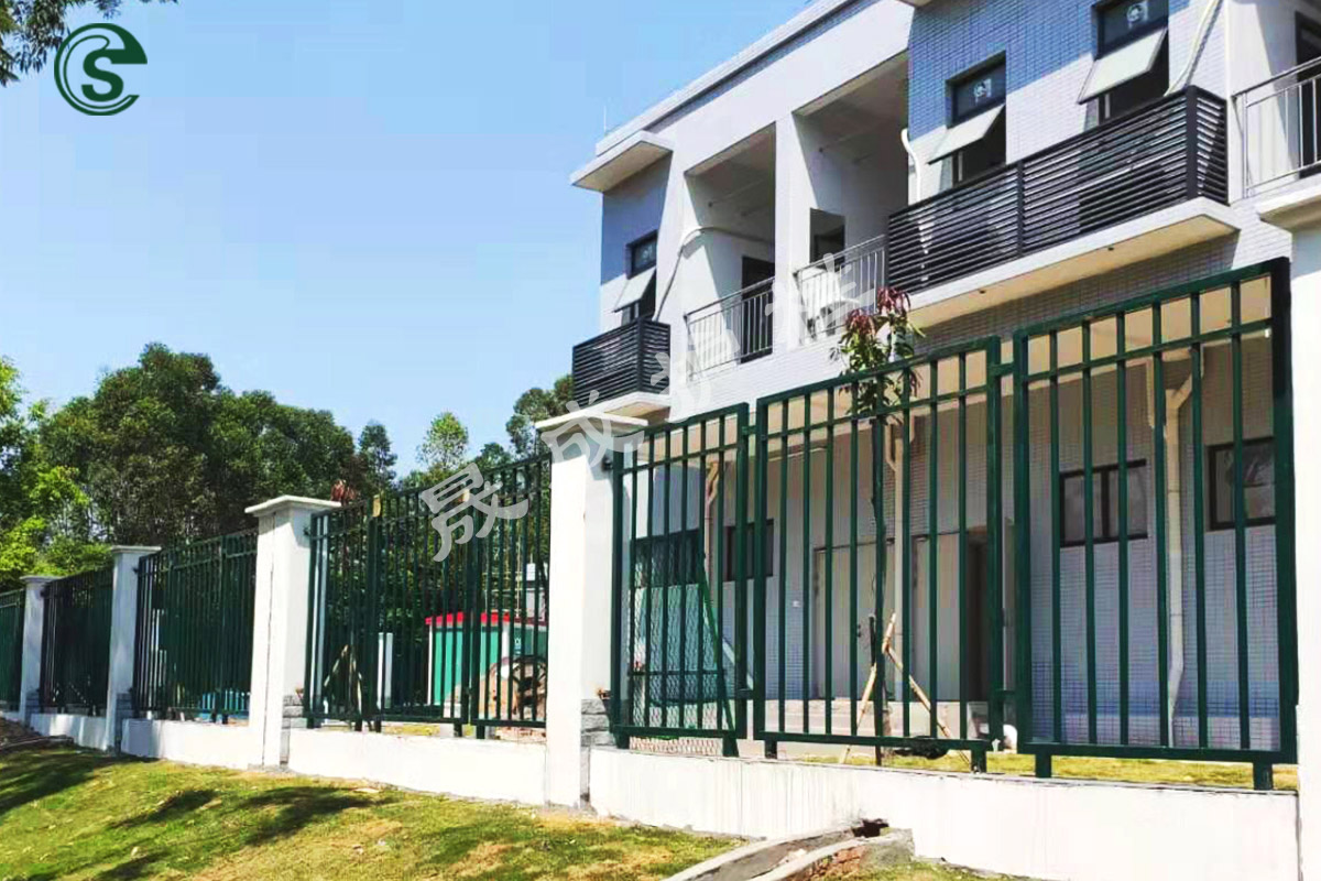 晟成圍墻護(hù)欄的基材采用優(yōu)質(zhì)雙面熱鍍鋅高頻焊管,表面進(jìn)行熱固性聚酯粉末靜電噴涂。橫欄、豎欄采用專(zhuān)用不銹鋼卡片、不銹鋼防盜螺栓穿插組合式固定,也可選擇數(shù)控焊機(jī)焊接成型,護(hù)欄片與主柱采用304不銹鋼連接件安裝固定。具有防腐性能強(qiáng)、運(yùn)輸成本低、安裝方便快捷等特點(diǎn)。晟成圍欄經(jīng)過(guò)多重防腐工藝,在室外使用可達(dá)到十五年以上的使用壽命。