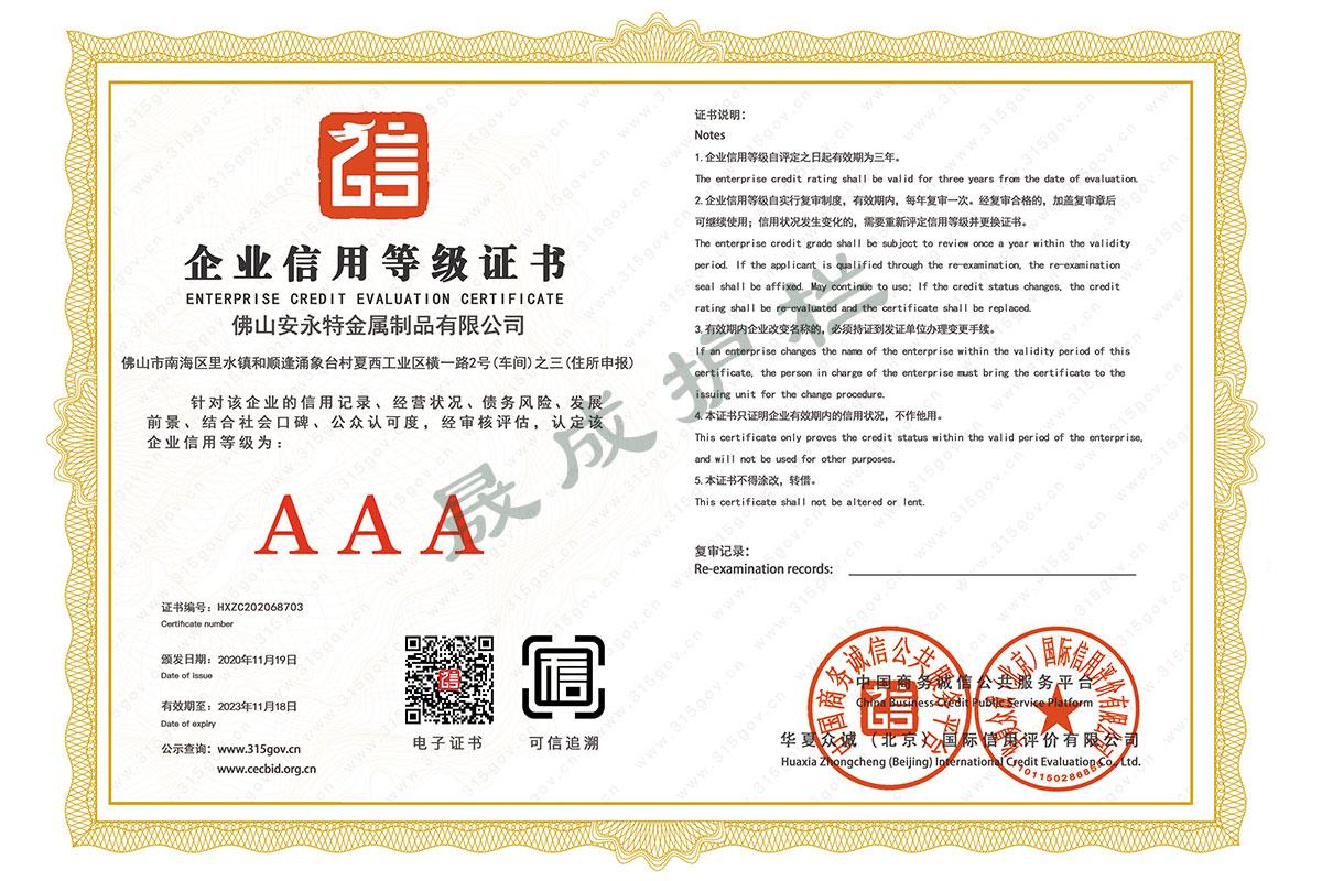 企業(yè)信用等級(jí)證書